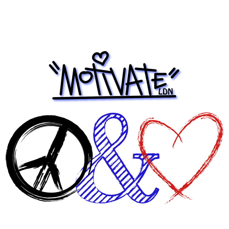 The Motivate LDN Peace & Love collection. Show the world the key to happiness. An iconinc logo on ethically sourced clothing trying to make society a better place. Show your love, Peace!